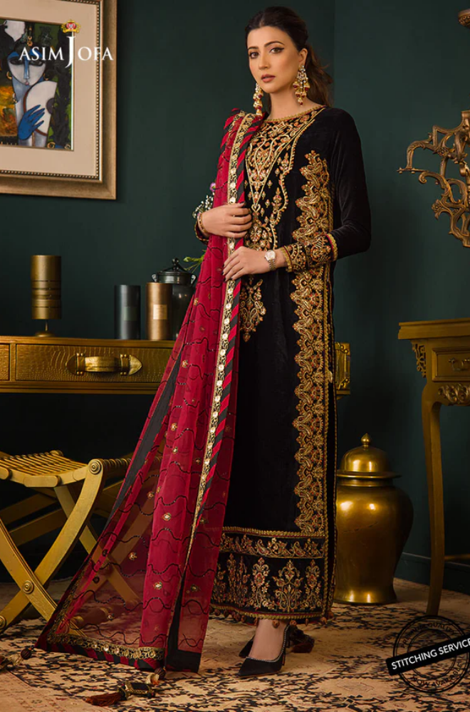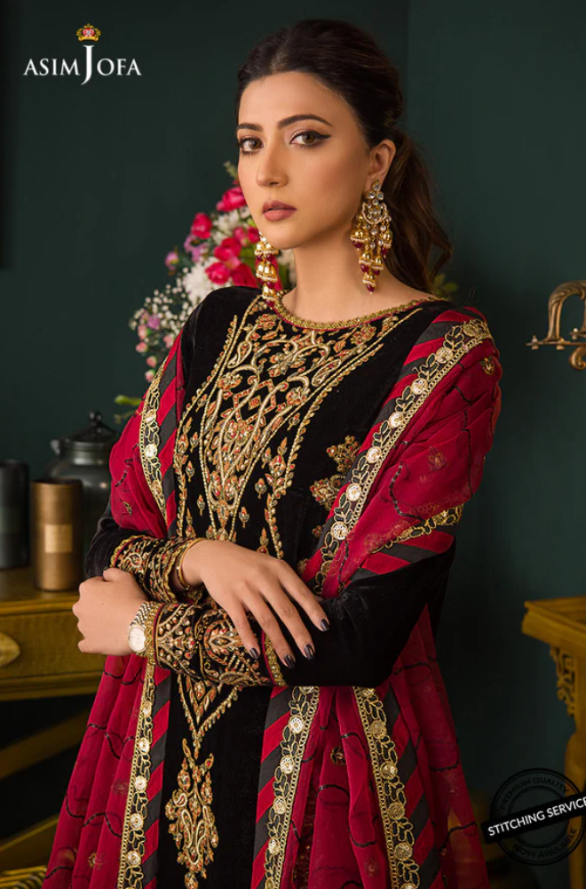 Asim Jofa -Winter 3PC Velvet Embroidered Suit - BFB0554