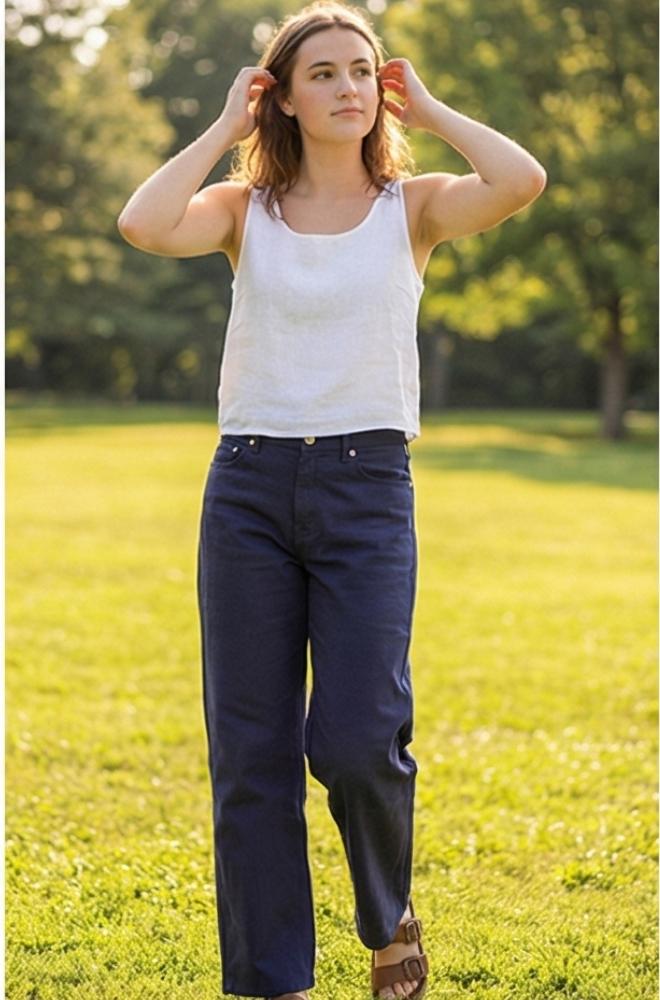 Signature Baggy High-Waist Denim - Navy Blue - BFJ006